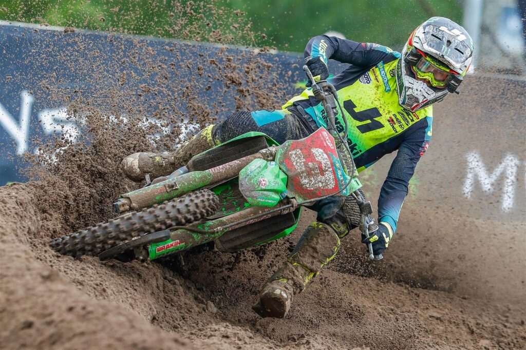 Kay de Wolf ofreció una verdadera lección de pilotaje al dominar la 1º manga de MX2, mientras que McLellan realizó una actuación magnífica asegurando el segundo puesto y Adamo completó el podio en tercer lugar. Simon Längenfelder enfrentó dificultades, ya que una caída lo relegó al séptimo puesto. Por su parte, Sacha Coenen tomó la delantera en los primeros momentos, pero dos caídas lo dejaron en quinto lugar y, además, fue penalizado por no respetar las banderas amarillas.