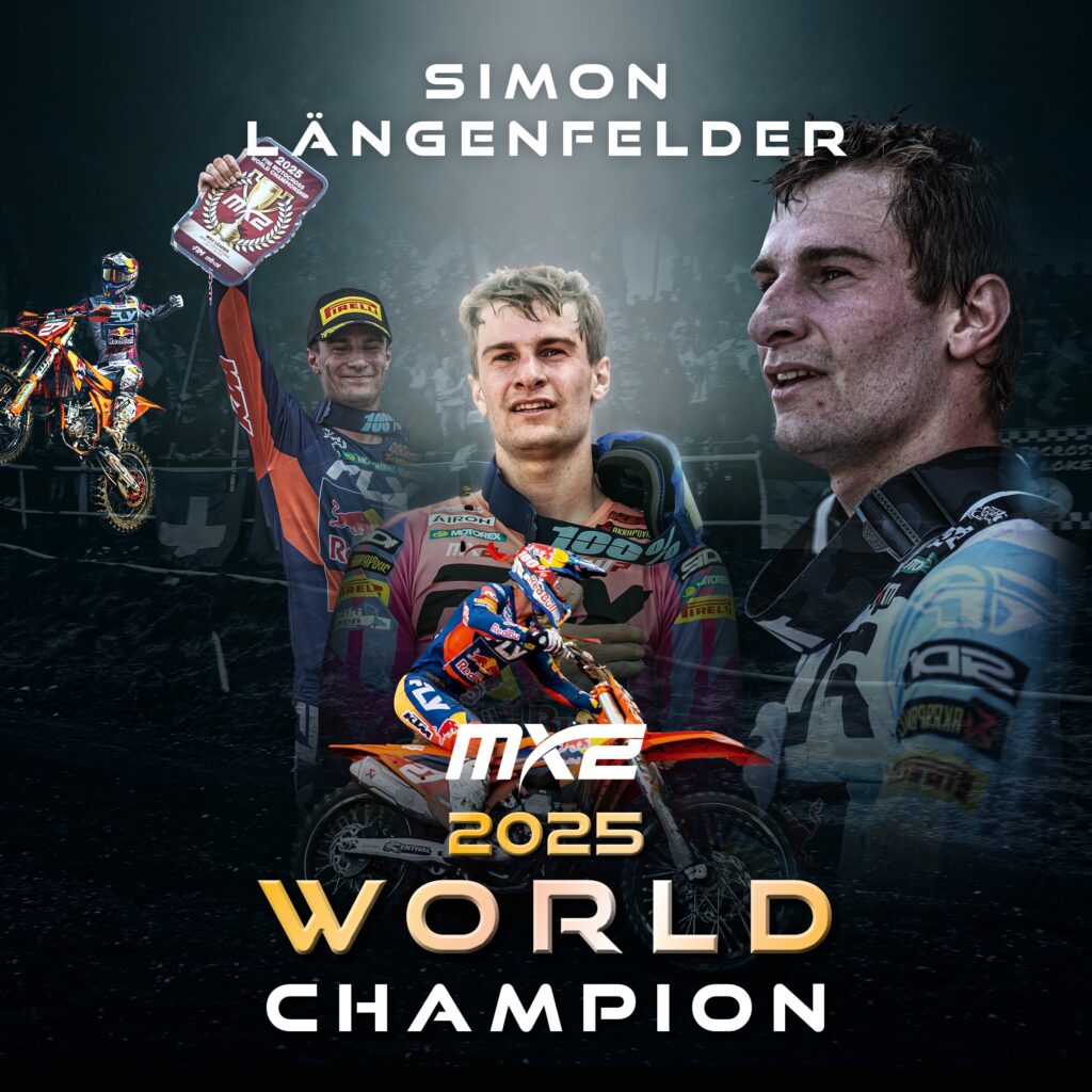 Simon Laengenfelder, 2.º y 6.º, segundo en la general de MX2 y primero del campeonato: “He terminado tercero tres veces en este campeonato y los dos últimos años fueron difíciles por dos lesiones. No estaba listo y los demás estaban mejor preparados, pero este año pude mantenerme firme. A veces ganar puede parecer fácil, mientras que perder es lo más difícil y cuando más se aprende. Estoy increíblemente feliz de que el trabajo haya dado sus frutos. Hoy fue una locura. Me costó entender lo que estaba pasando y nunca esperé que lloviera tanto aquí”.