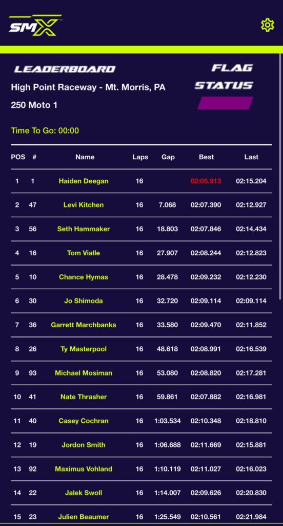 Estuvo Prado ahí 6º hasta media manga cuando presionado por Tomac paso a Webb. Llego a estar 5º pero en los últimos 10 minutos empezó a perder posiciones y acabo el 12º, parece que hay falta de forma física y o que se cansa de luchar con esa moto. Está claro que no se siente a gusto en esa moto. Prado dio unas vueltas decentes. Luego llegó Tomac y perdió más de 3 segundos por vuelta. Hasta lo paso Paturel con una Suzuki. Prado hizo la 6ª mejor vuelta rápida, pero a unos 3 segundos de Jett y Tomac