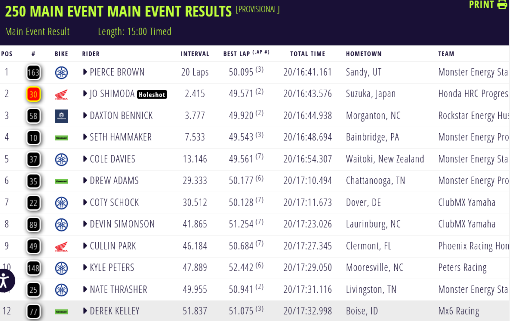 Chapuza de la AMA en la final de 250, cuando Shimoda iba primero luchando con Brown