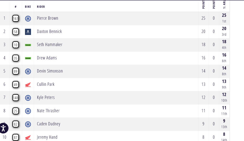 Y aun no esta claro como queda la cosa, parece que Brown aun tiene la victoria, pero 5 puntos menos, pero en la clasificación provisional del campeonato no solo no sale eso, sino que no sale ni Shimoda en ella…