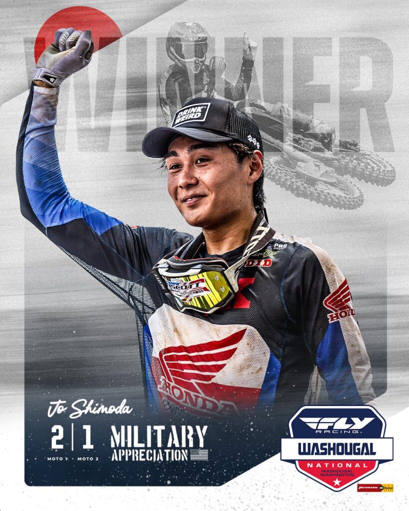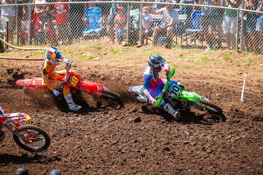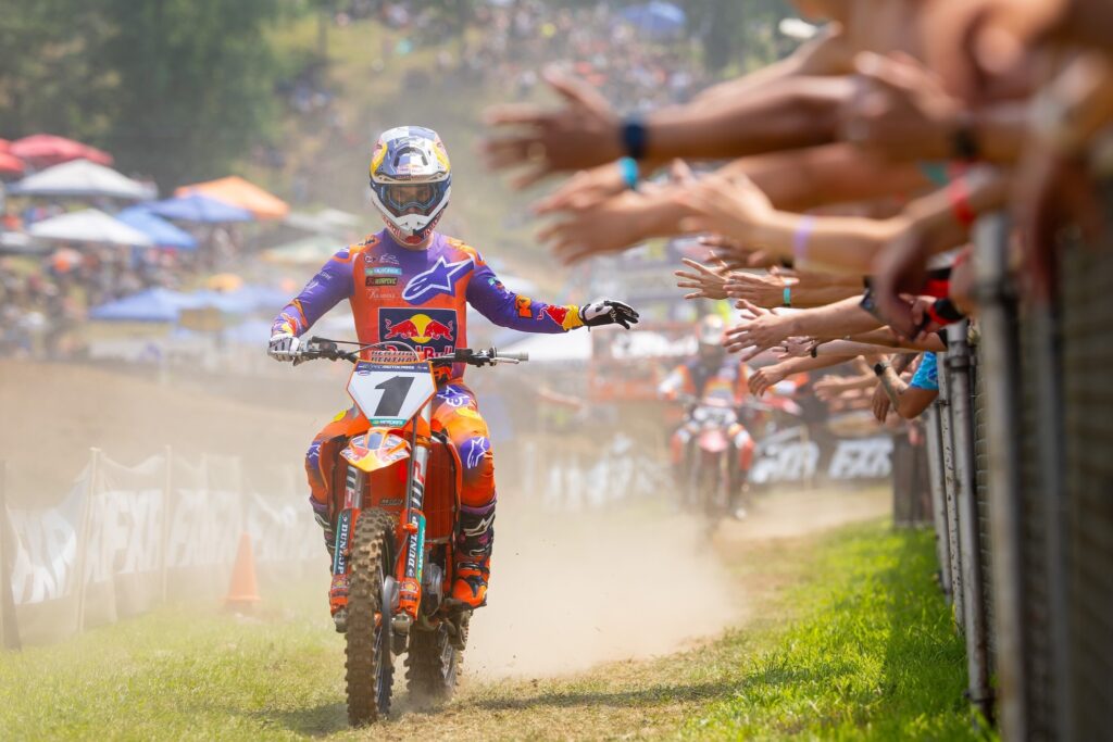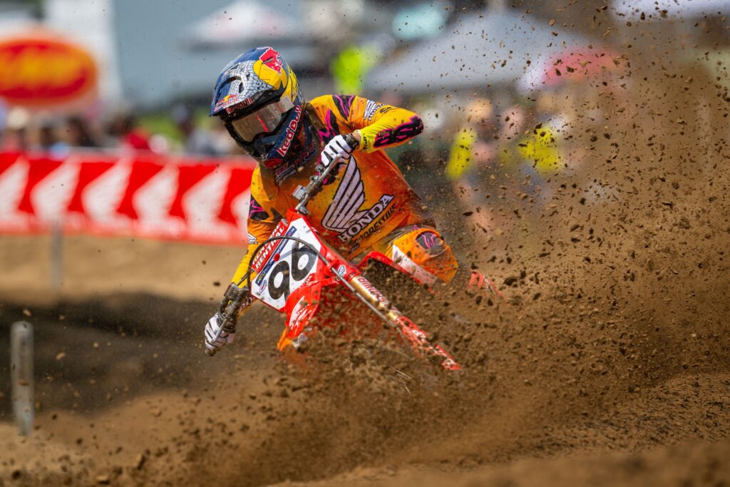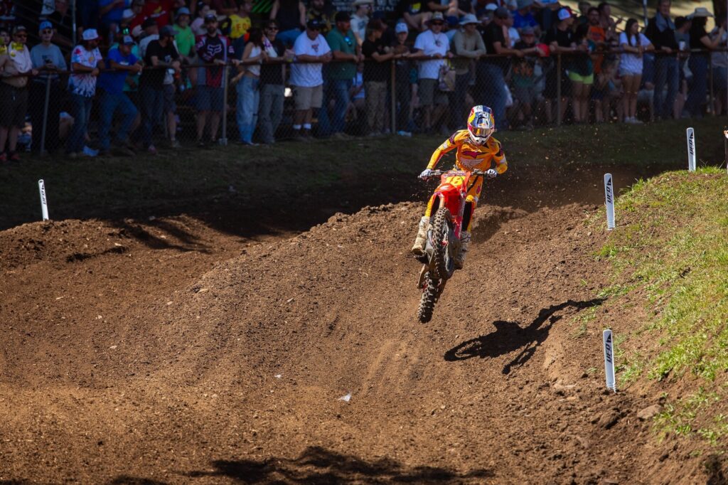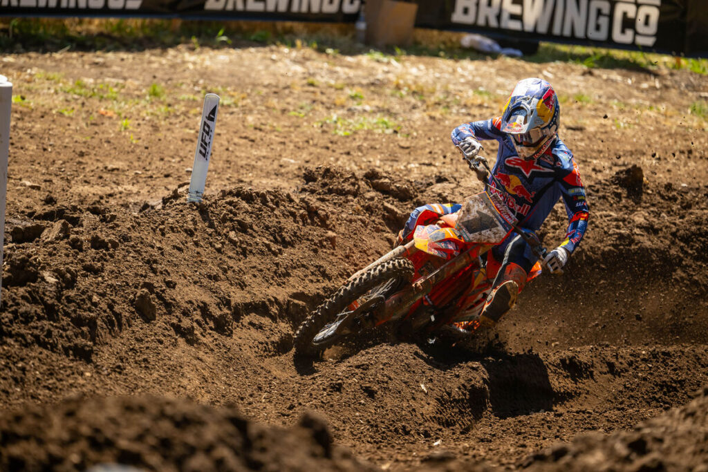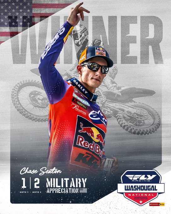 Chase Sexton en Washougal: «¡Fue genial conseguir una victoria hoy! Hacía tiempo que no ganaba una carrera, desde el Salt Lake City Supercross, así que es bueno quitarme ese peso de encima y llegar a la semanas de descanso con buen ritmo. Todavía tengo algunas cosas que mejorar, pero mi velocidad fue mejor hoy y estoy entusiasmado por lograr la victoria. No haber comido tierra en la primera manga fue genial… En la segunda manga, comí mucha y no me gustó nada. Pero era importante ser creativo y hacer adelantamientos rápidos aquí. Gracias al equipo por hoy, es una buena sensación volver a lo más alto del podio».
