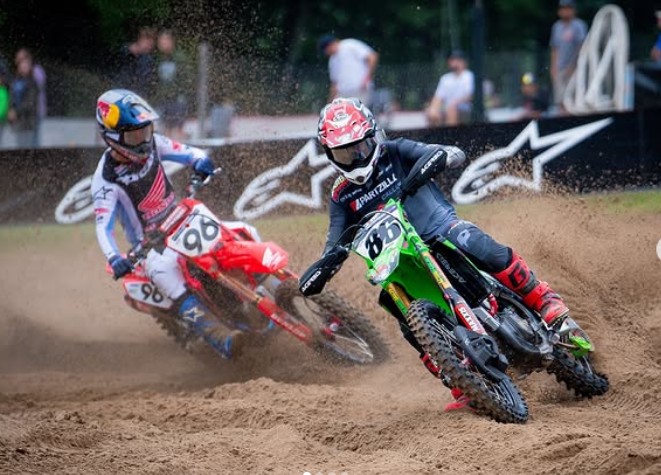 En la 1º manga aguanto detrás casi una vuelta entera a Jett y Tomac, pero en la 2ª manga le pasaron en la primera vuelta 8 pilotos.